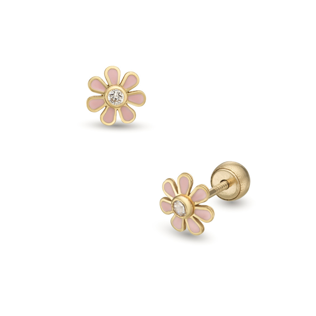 Lisa rózsaszín százszorszép gyerek fülbevaló gömb zárral